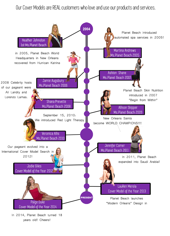 Our Cover Model Search reaches out to women from across the globe and provides the opportunity to work alongside of the Planet Beach Corporate team on various promotions and marketing projects. Our models have the opportunity to become the face of one of our five marketing campaigns for 2015, as well as compete for the title of the Planet Beach® International Cover Model of The Year!